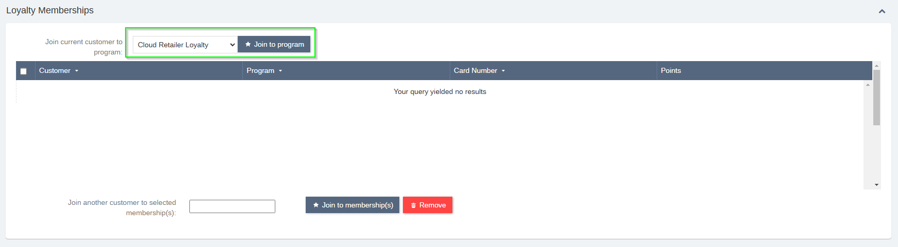 You can join a customer to a loyalty program in the back office if, for example, you don't have access to the POS, or if you wish to join a second customer to an existing membership.